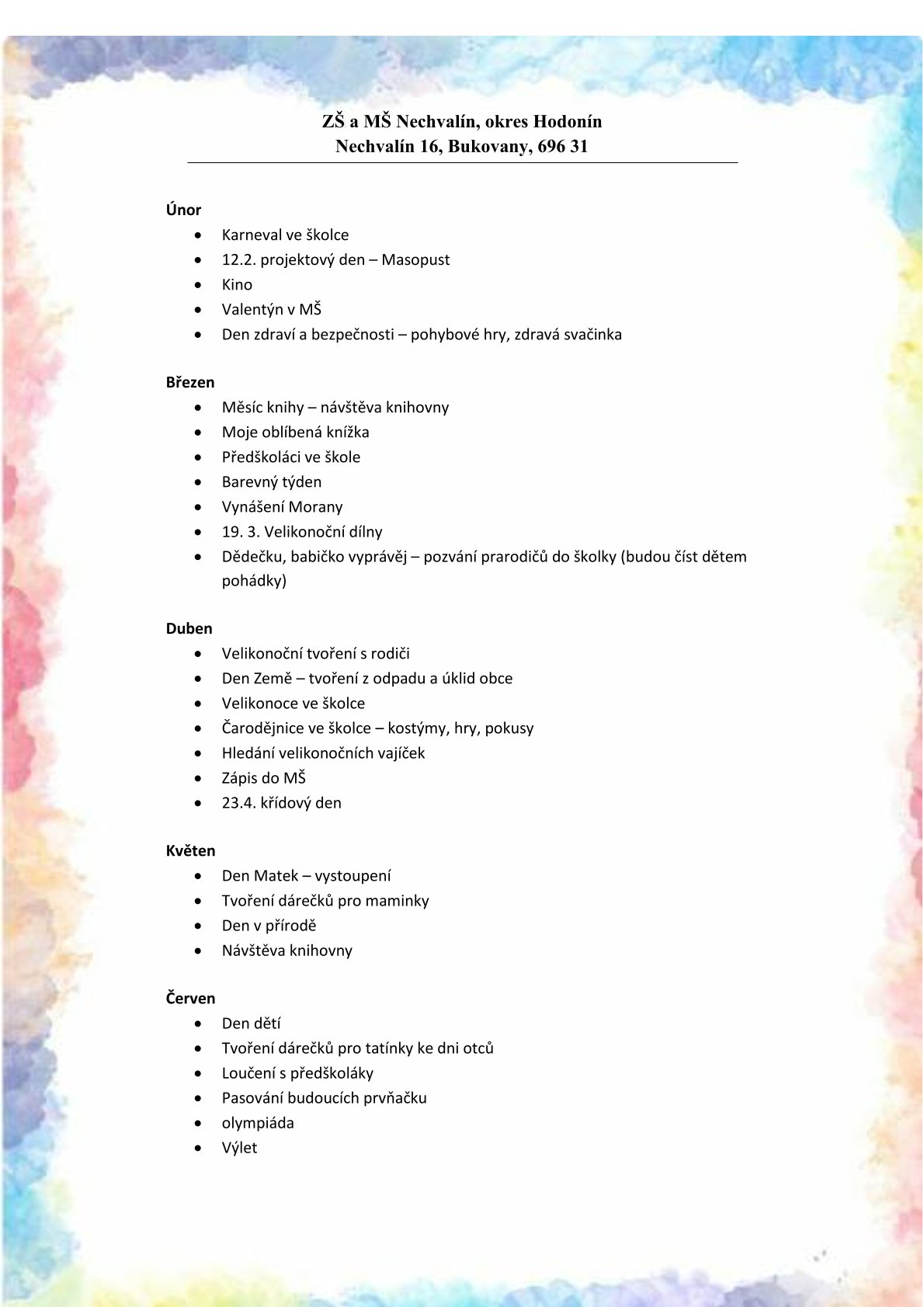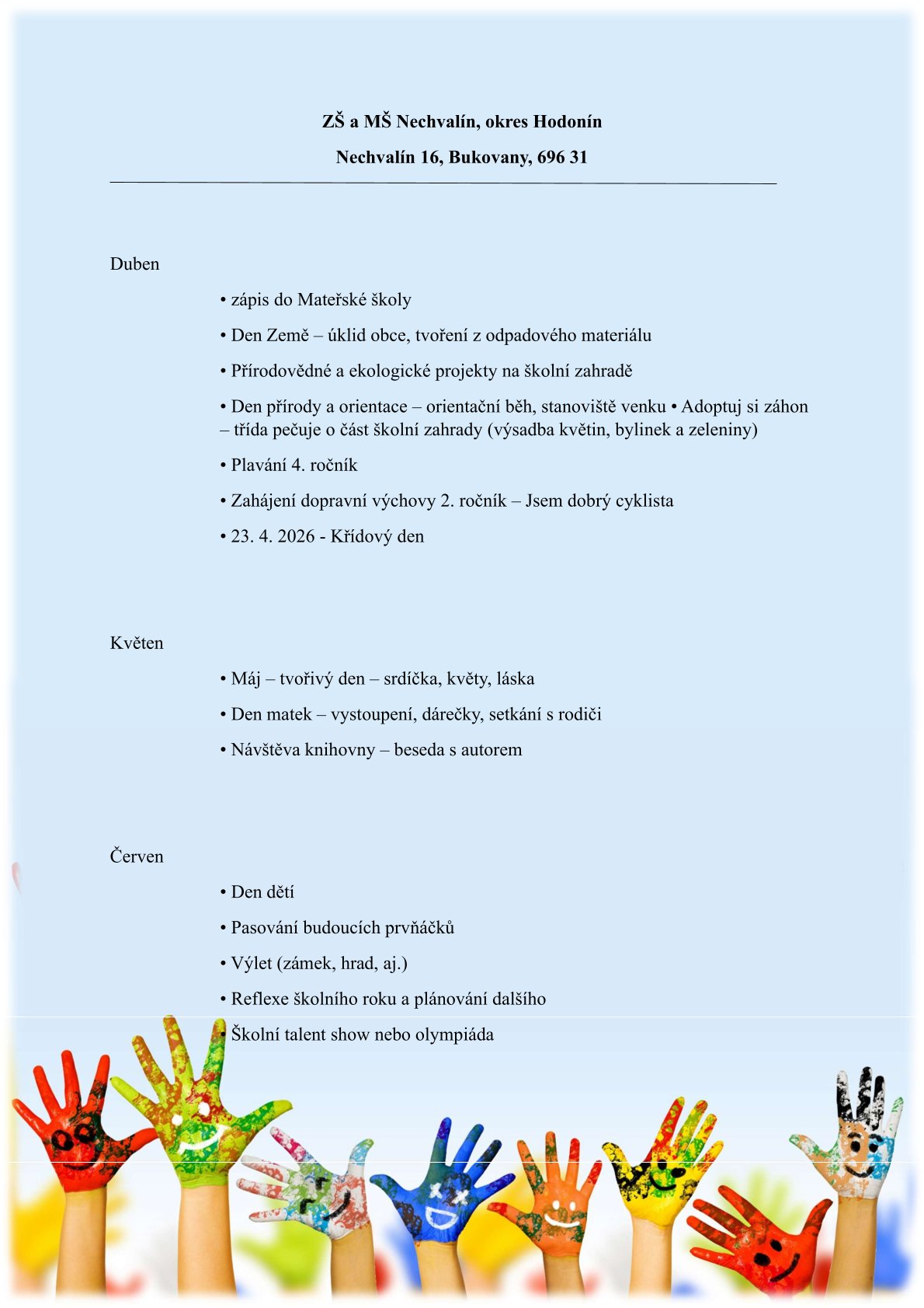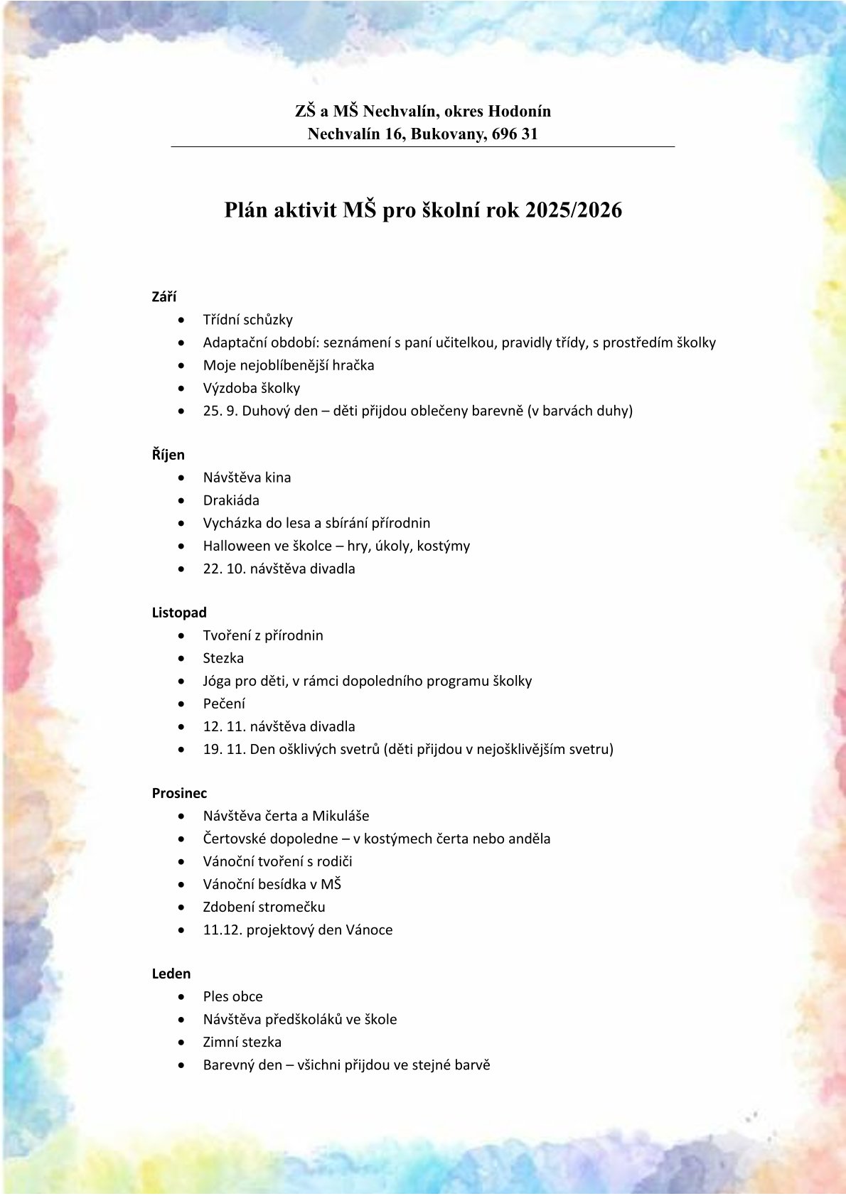 ŠKOLNÍ AKCE NA ŠKOLNÍ ROK 2025/2026