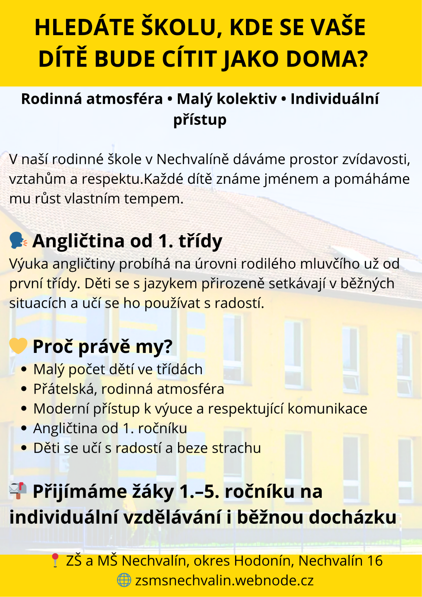📍 Malá škola. Velká pozornost. Smysluplný začátek školní cesty..